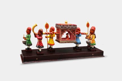 The bride and the groom, accompanied by elders, the priest and the nadaswaram performers makes the Marriage set really attractive. This charming toy set representing a Telugu wedding, is made with skill and creative finesse.