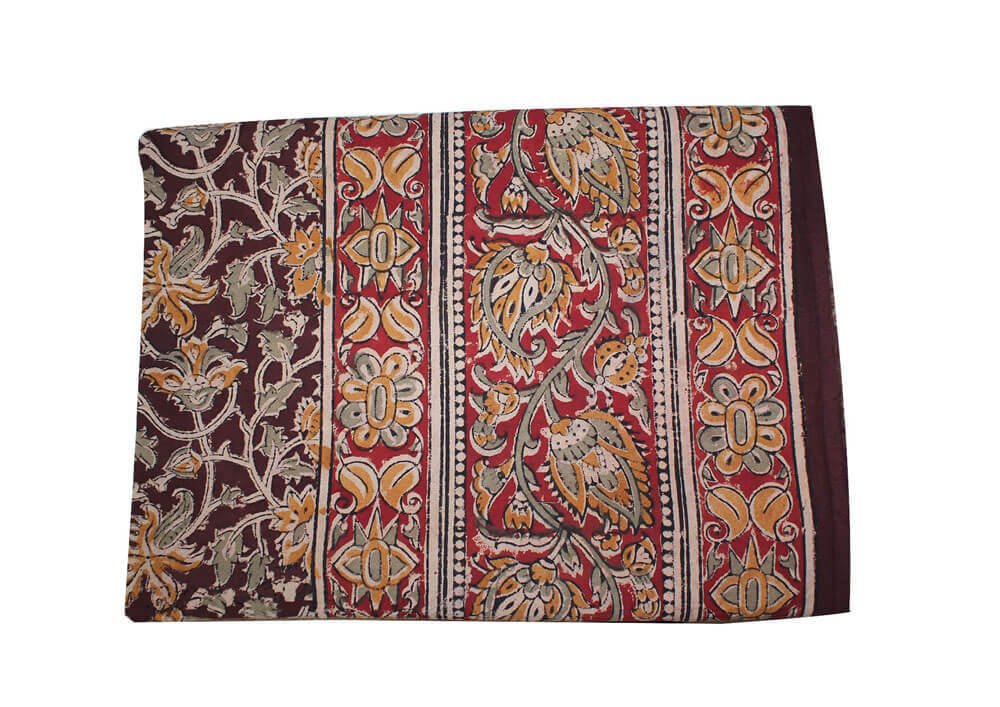 Machilipatnam Kalamkari involves the use of vegetable dyed block-painting of fabrics and it is produced in Krishna district of Andhra Pradesh. This style initially evolved during the period of Mughal Dynasty. The pillow cover in the image is really attractive, with fine appeal.