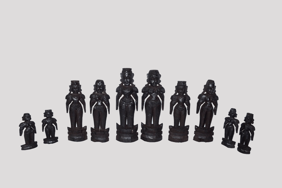 A Raja Rani set featuring five pairs has not only been created out of Red Sandal wood but also painted with a superior finish and shine. The carving of these idols serves to enhance the overall appearance..